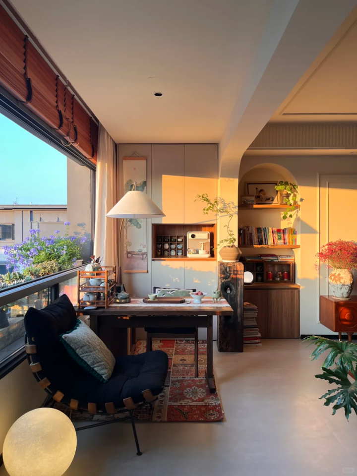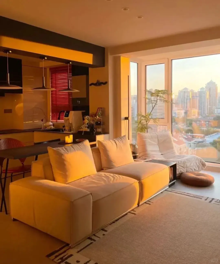 而对于一些家居自媒体而言的话,这种西晒房的景色也是绝佳,非常的出片,也很适合他们的工作。